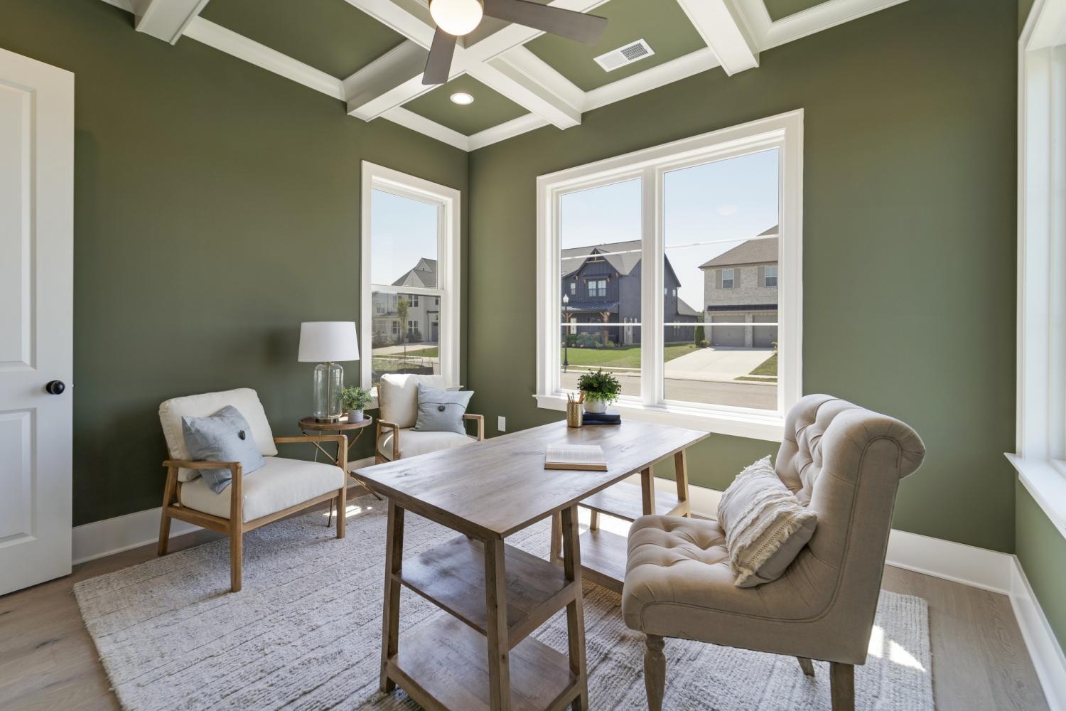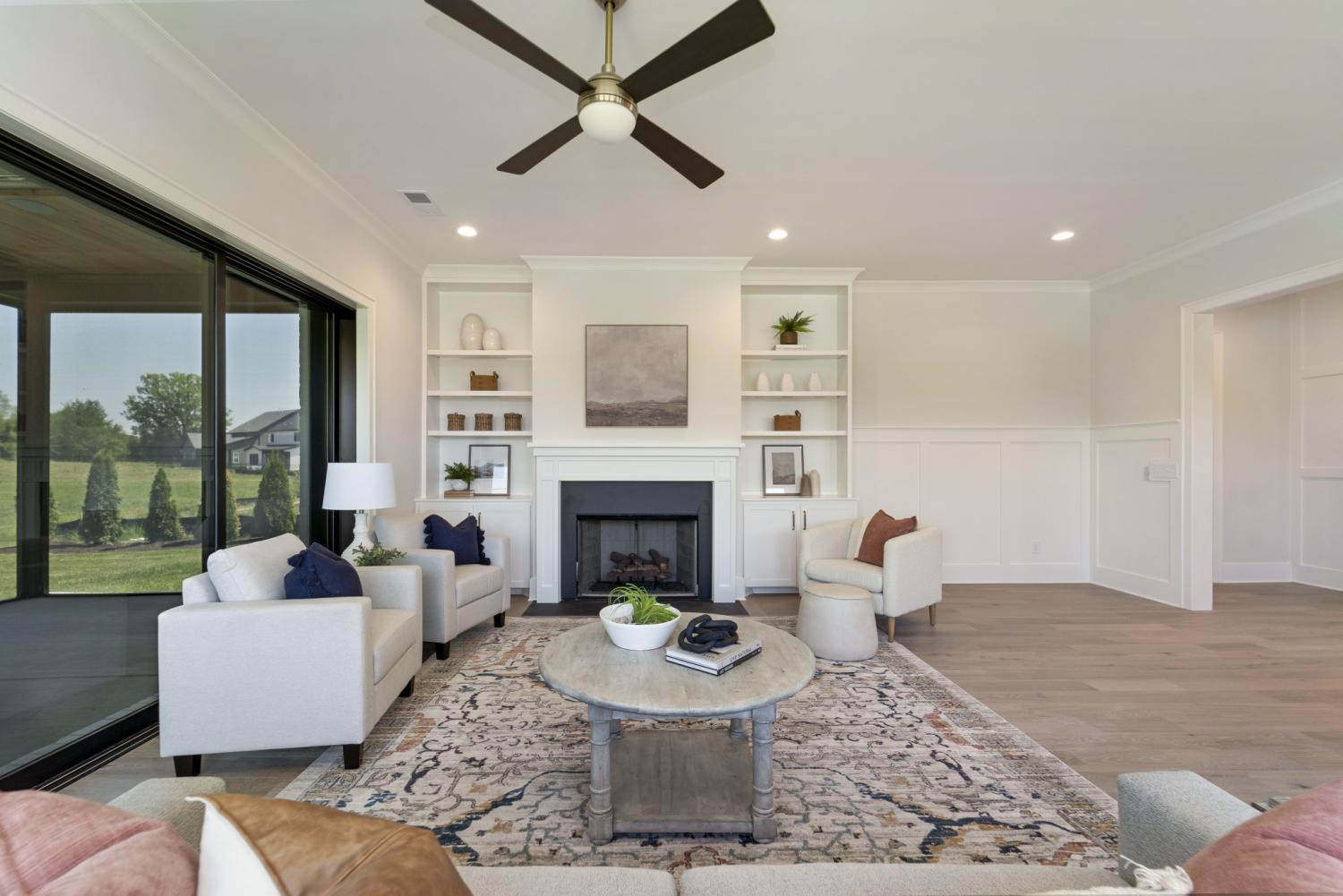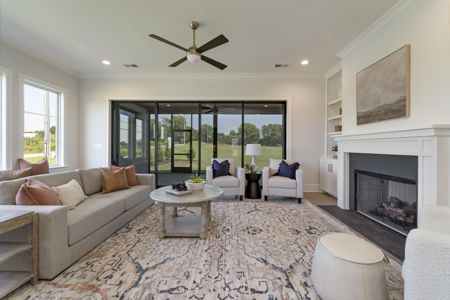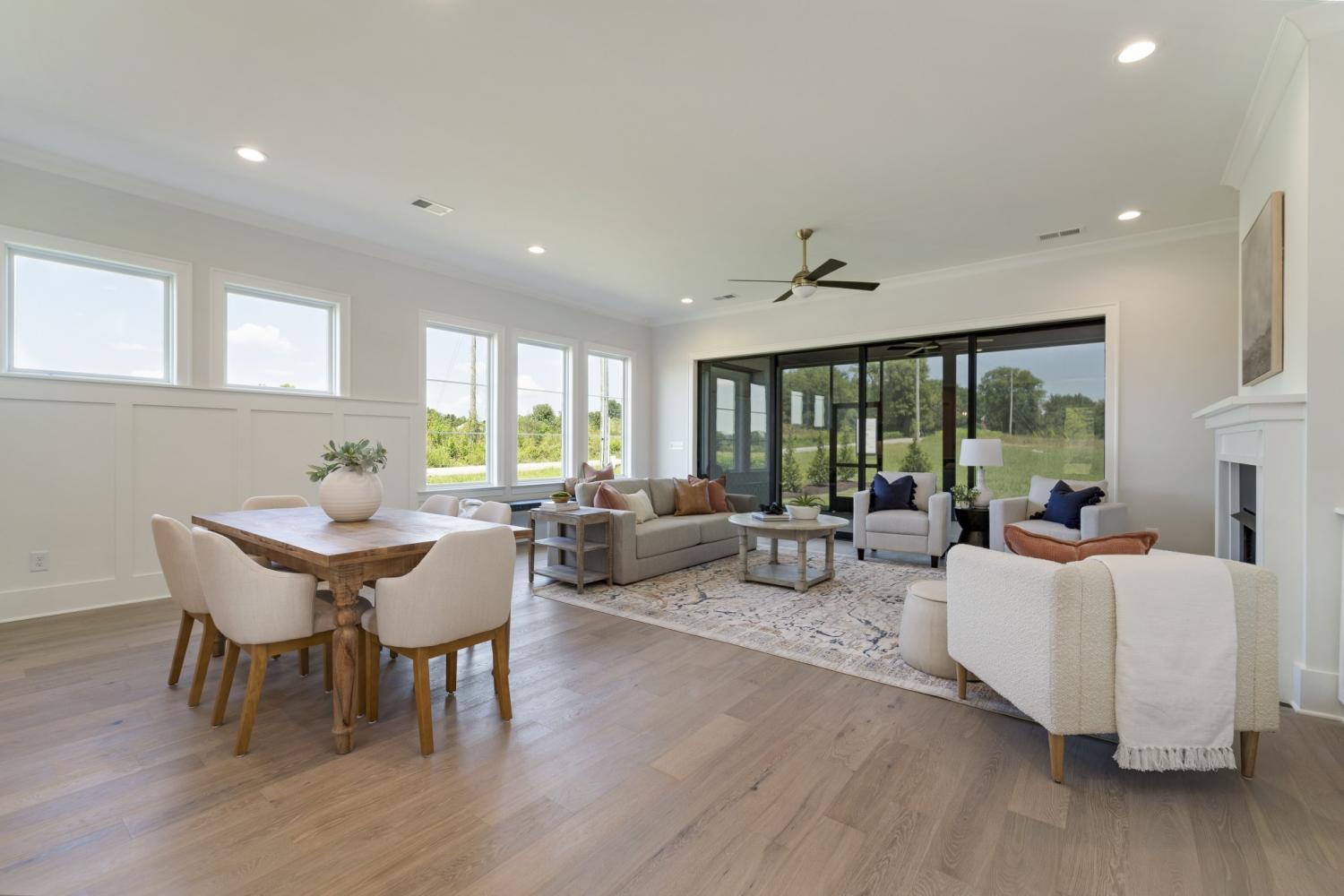 The heart of this exceptional home is its Gourmet Kitchen, featuring premium KitchenAid appliances and a functional working pantry, seamlessly connected to an Informal Dining Room that opens to the Great Room—an ideal arrangement for both everyday living and sophisticated entertaining. Step outside to the expansive 12'x23' Covered Rear Porch, thoughtfully equipped with a Privacy TV Wall and Ceiling Heaters for year-round outdoor enjoyment.