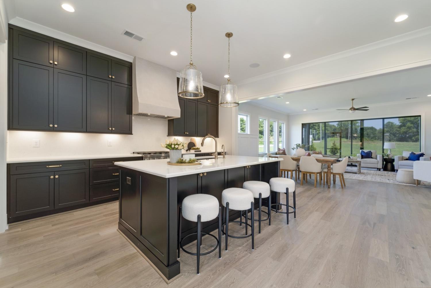 Discover exceptional living in this custom-built Woodridge Homes residence in the prestigious Thomas Downs community. This executive home features soaring 10' ceilings, elegant 8' doors, and gorgeous wide-plank hardwood flooring throughout. The thoughtfully designed open layout showcases a stunning full glass wall in the Great Room, creating a light-filled, airy atmosphere. Enjoy the convenience of main-level living with a luxurious Primary Bedroom Suite and versatile Home Office/Flex Room on the first floor. The upper level offers four additional Bedrooms and a spacious Bonus Room, perfect for family living or entertaining guests.